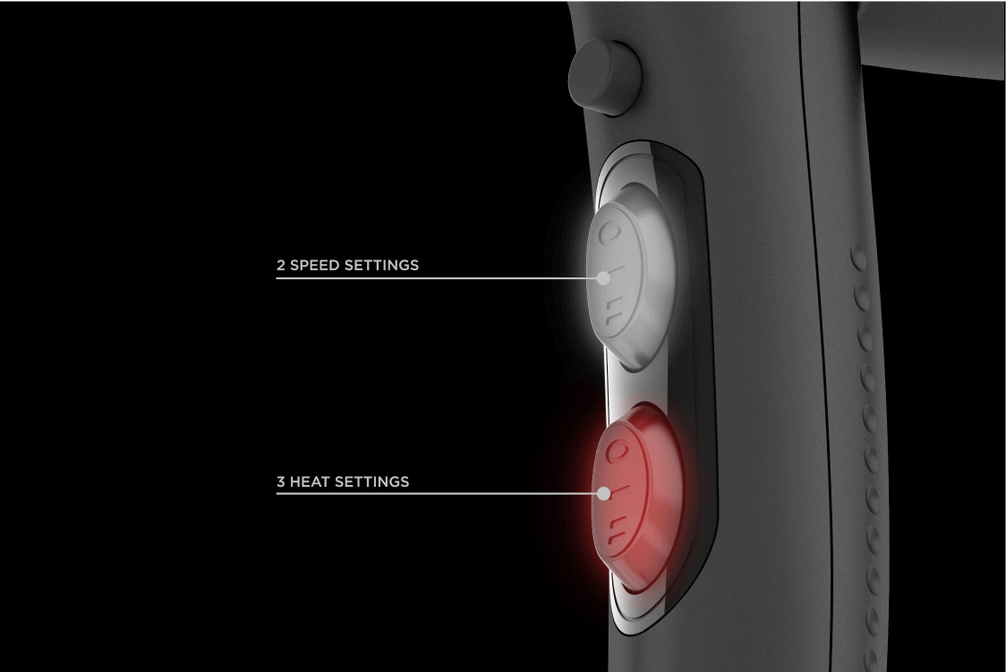 Choose the heat you desire with the speed you need, and take full control over your hair blow dry. In Addition, the dryer features a low-heat setting to suit even the most fragile hair types.