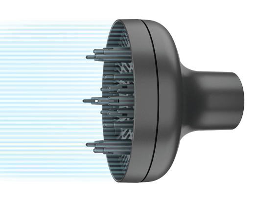With its 2 concentrator nozzles , you'll get the perfect styling precision, allowing you to focus the airflow for easy bangs styling, and to add volume to the roots