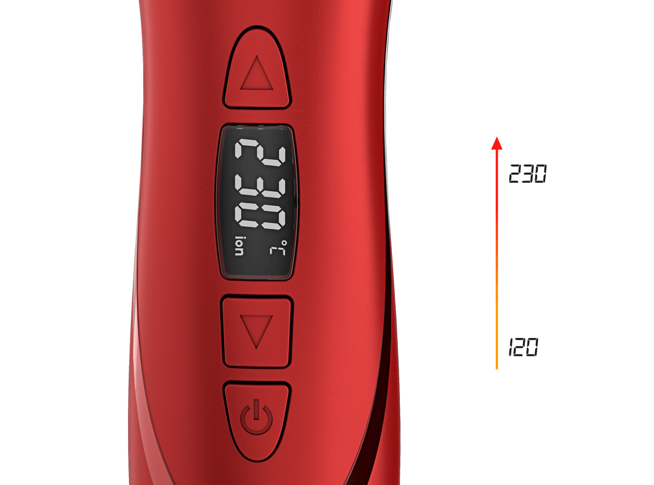 Adjustable temperature settings from 120°C-230°C (250°F - 450°F) that allow customizing the temperature to all hair types, from the thinnest to the toughest.